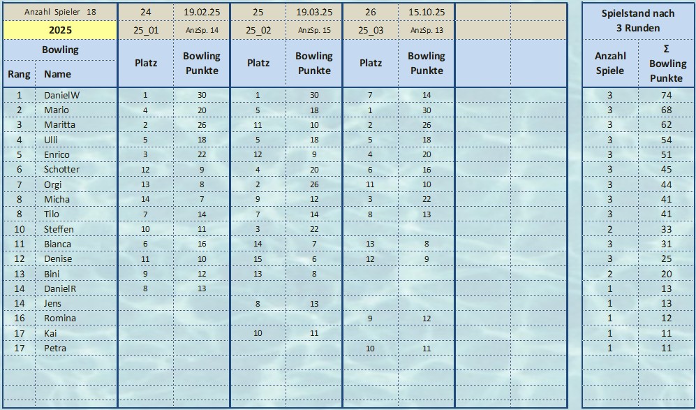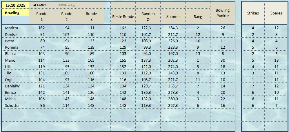 26.N2-Bowling-Turnier 15.Oktober 2025